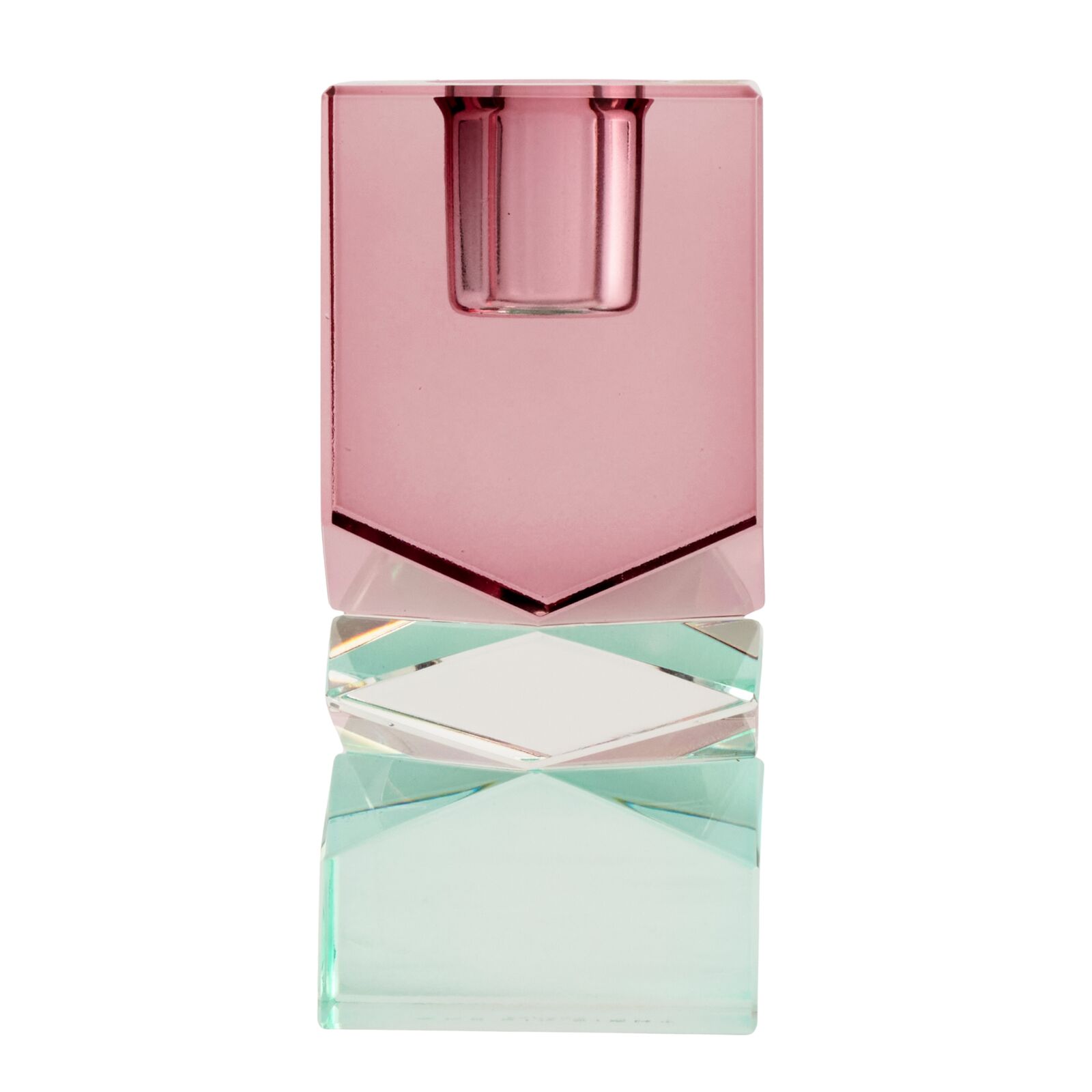 Petite in size but big on style, the Ayla Candle Holder by One Six Eight London brings artistic charm and soft sophistication to any space. Crafted from coloured cut glass, this 10.5cm piece combines a heather purple top (Pantone 5145 C), a clear centre, and a pale aqua blue base (Pantone 2204 C) for a unique, layered look.