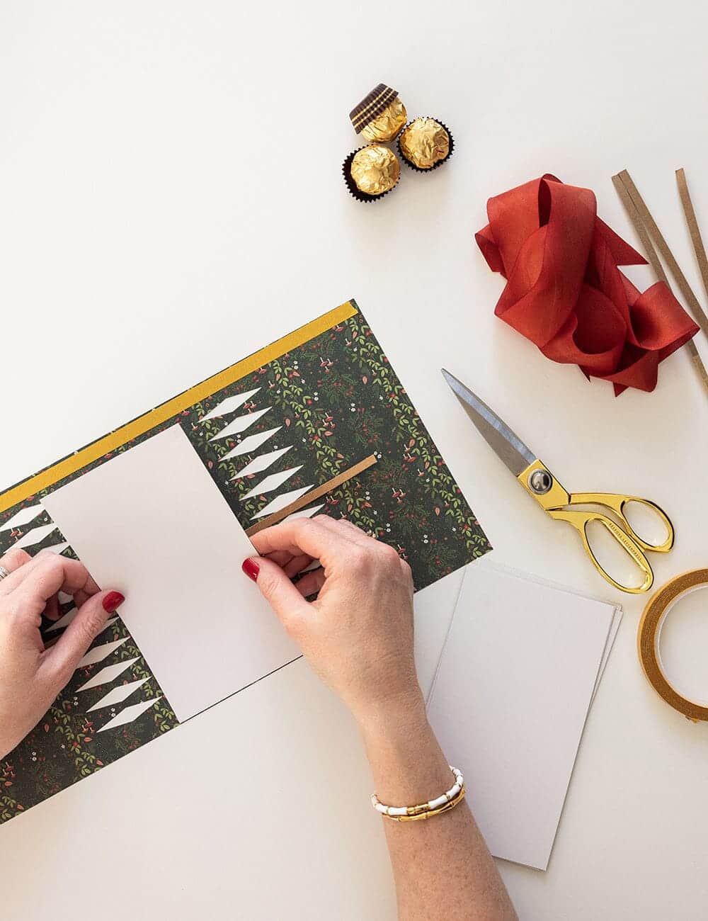 5. Peel the double sided tape and roll the cracker adhering the tape. Use your fingers to sharpen the paper around the cardboard insert.