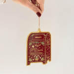 Fine enamel Santa's Mailbox ornament, complete with fine gold line ribbon.