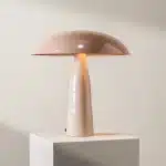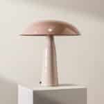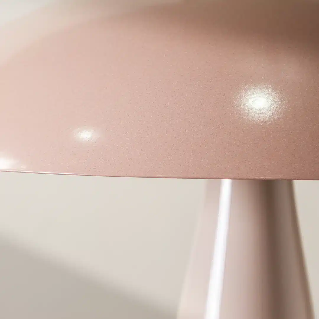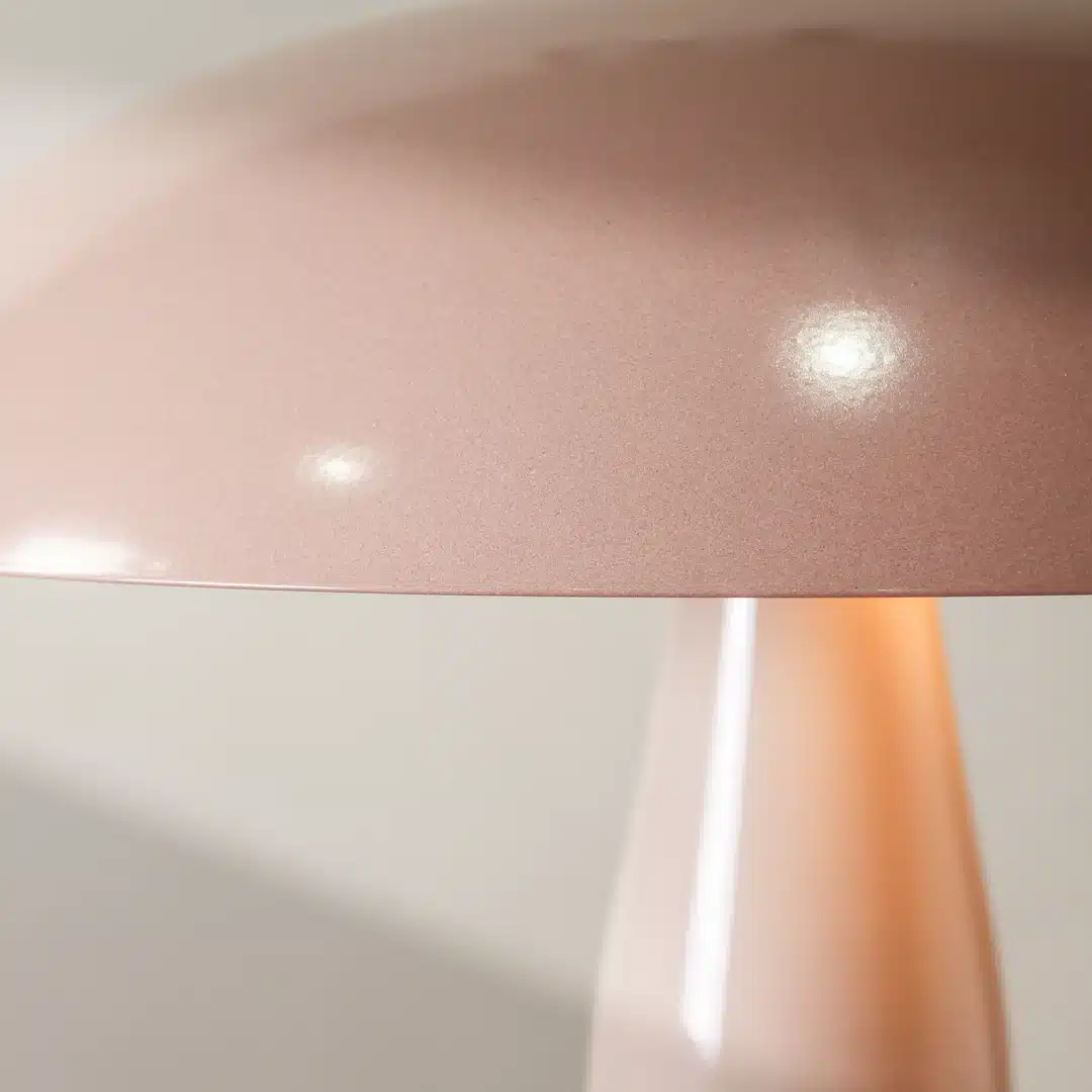 A study in tone and restraint, the Glint Table Lamp pairs a rounded dome shade with a subtly tapered base. Crafted in gloss-finished metal and grounded by a softly muted, matte top. Its silhouette recalls classic mushroom forms, reinterpreted through a slim, modern lens. The combination of textures, gloss against matte, creates quiet contrast while the two colour ways, Mauve and Rose Dust, add warmth and softness. Part of the Tender Forms collection, Glint is designed to evoke calm through curve and proportion. It brings a sense of softness to structured interiors and architectural weight to gentler spaces. Perfect for smaller consoles, shelves, or layered bedside tables. Pair with low books, natural stone objects, or brushed metal trays for a tonal, cohesive look.