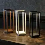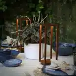 Cordless, rechargeable and dimmable portable lamp for indoor or outdoor use.