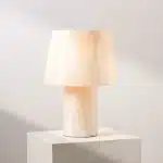 Named after the Japanese word for “fallen leaves,” the Ochiba Table Lamp evokes the quiet beauty of seasonal change. Its gently tapered form and pale resin surface recall weathered stone or sunlit parchment – organic, understated, and effortlessly elegant. A piece that feels as though it has always belonged.Perfect for muted, tonal interiors. Layer on open shelving with ceramics or atop a marble-topped console to let its simplicity shine. Pair with cream, putty, or clay-toned accents for a harmonious and collected feel.Dimensions: 40H x 30W x 30D cmMaterials: Resin Shade and BaseSwitch type: On/Off Inline SwitchCord: Black, 200cmBulb: E27 fitting, max 25W LED (not included)Care: Wipe with a soft, dry clothNot suitable for outdoor useHandcrafted in India