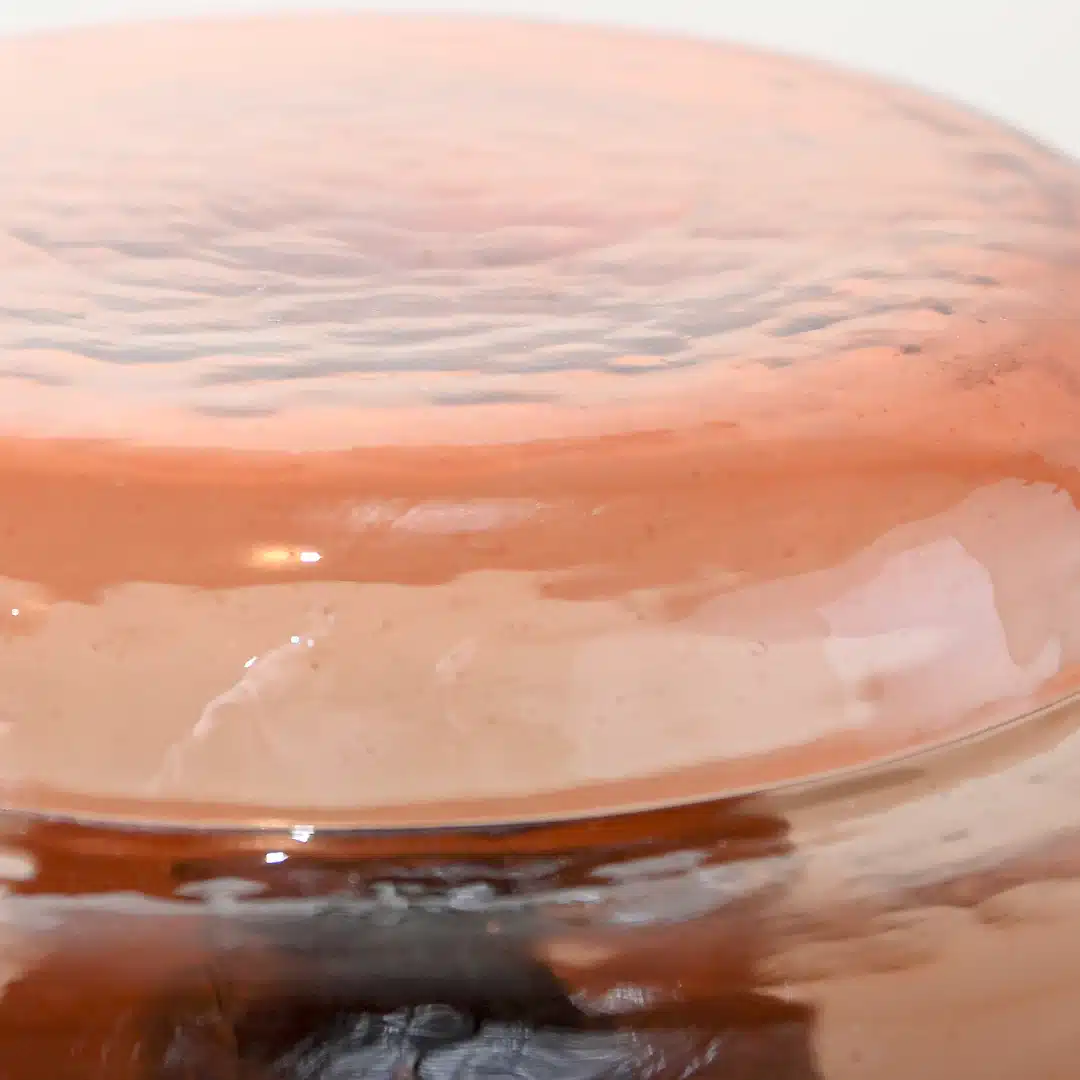 The Brunelle Lamp is a piece of quiet drama, where soft coral glass meets solid grounding. Its rippled glass shade evokes the movement of water or mist, diffusing light through shifting waves of colour. Resting on a cylindrical base in a rich, dark chocolate finish, its form feels considered and architectural – a balance of weight and lightness, opacity and glow. The base, with its deep tone anchors the piece, allowing the soft curves of the shade to shine. It’s a lamp that brings depth to interiors, ideal for styling in a moody bedroom, a minimalist living room, or layered alongside stone, timber, or brushed metal for a rich material interplay. We brought Brunelle into the Tender Forms collection to introduce a darker, more grounded energy, to pair with our organic and metallic pieces, and to offer a sculptural silhouette with presence and soul.