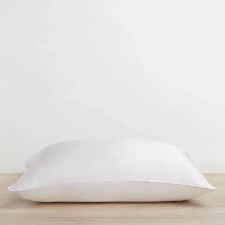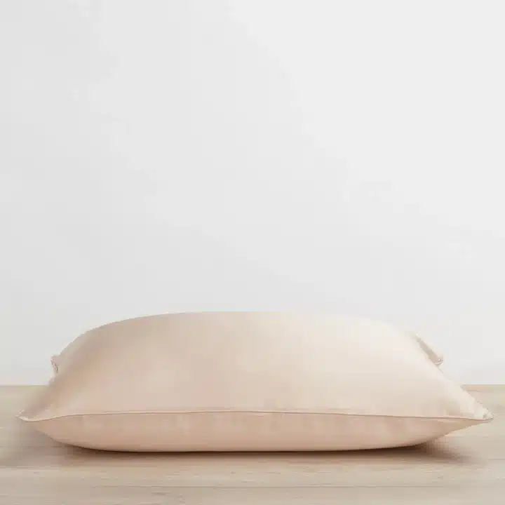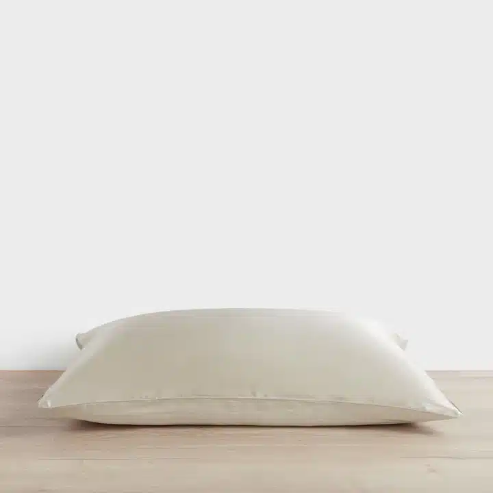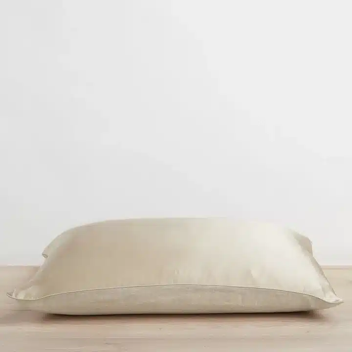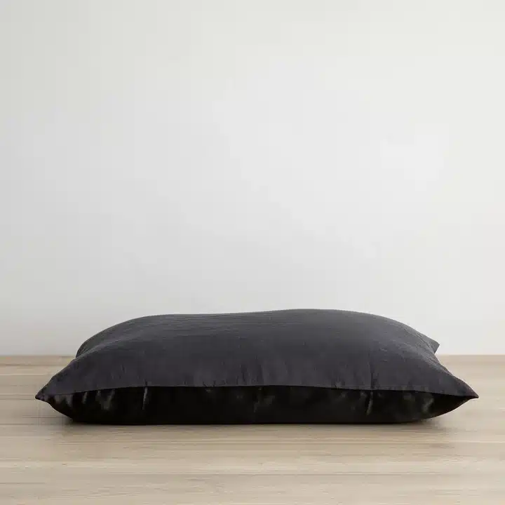 The pillowcase closes with an invisible zip, and comes in a matching silk and linen drawstring bag.